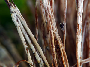 Die Frk. waren an den Wurzen miteinander durch Moos verbunden oder wuchsen auch oberirdisch direkt aus einzelnen Moosteilen.