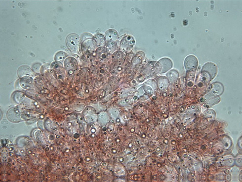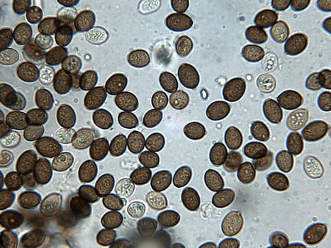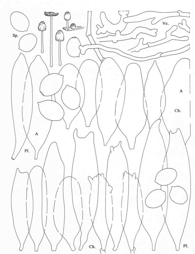 Die Sporen beschreibt Aronsen als breit ovoid bis subglobos,