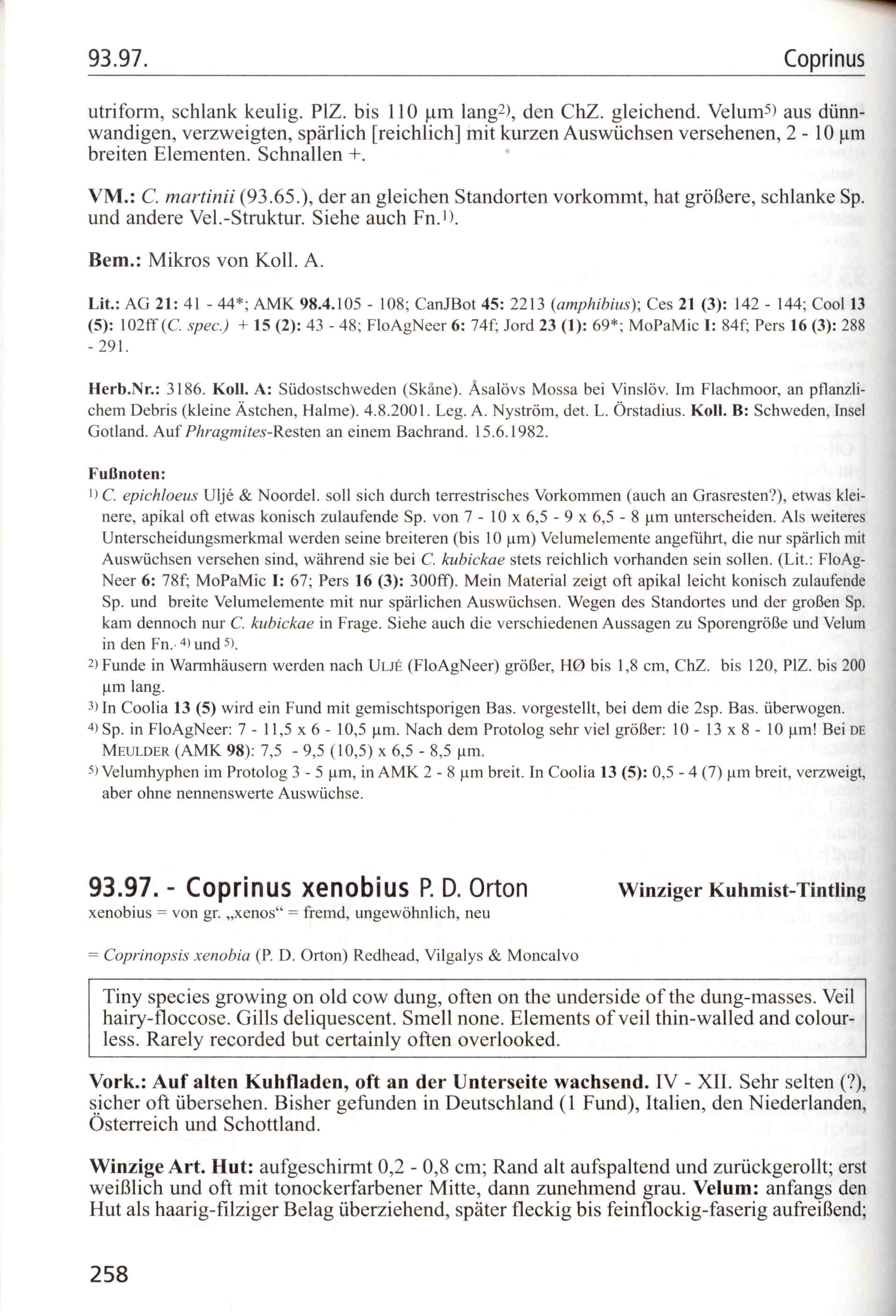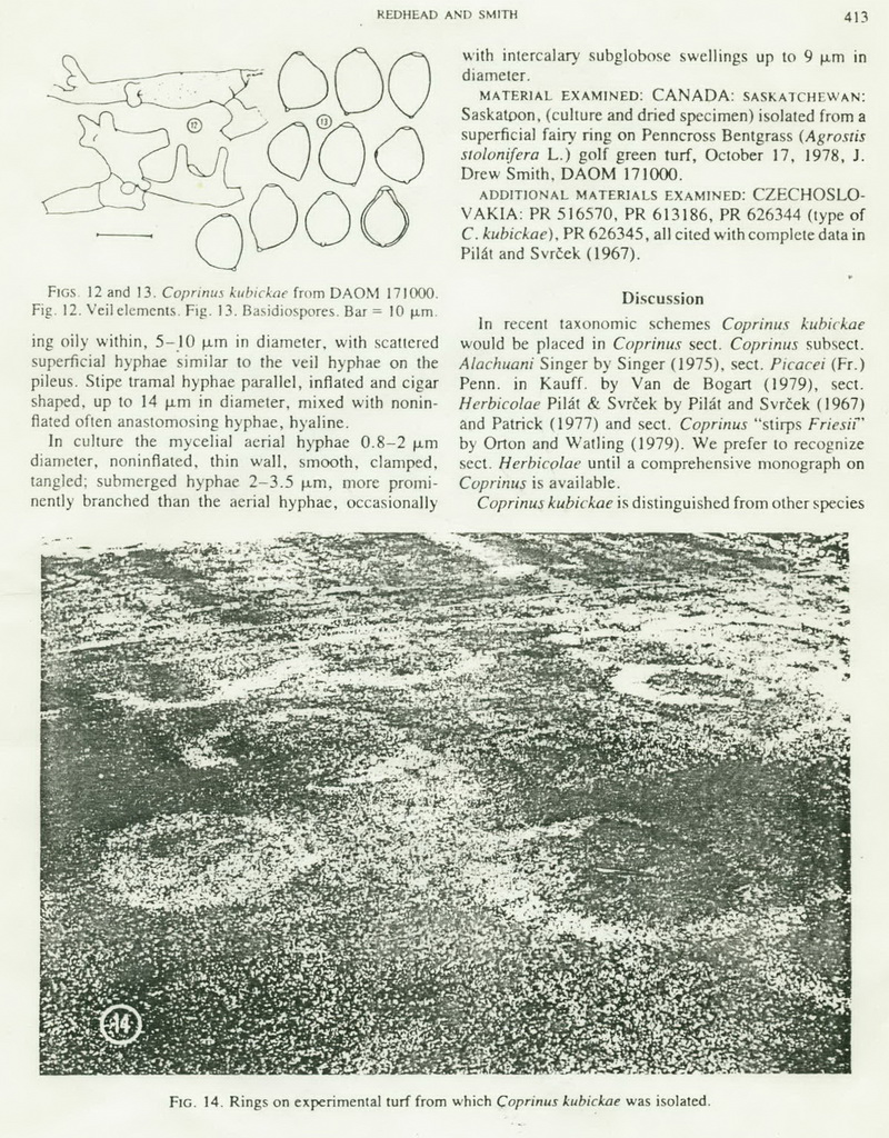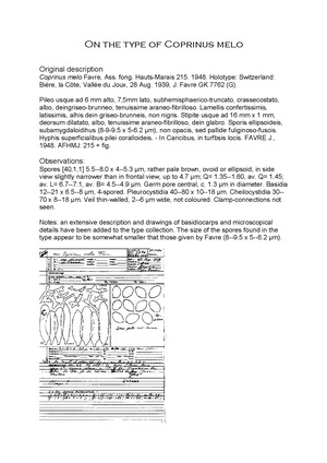 Coprinopsis melo, aus Beiträge der Kryptogamenflora der Schweiz, Band X, Heft 3 von J. Favre wurde von Kees Uljé zu C.urticicola gestellt. Wenn die Sporen grösser wären, könnte man hier durchaus unseren bislang namenlosen Tintling vermuten!