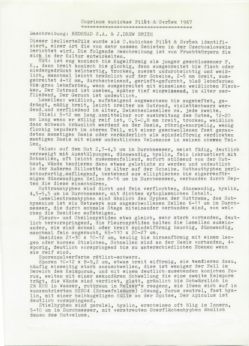 | Coprinopsis kubickae Pilát & Svrcek |