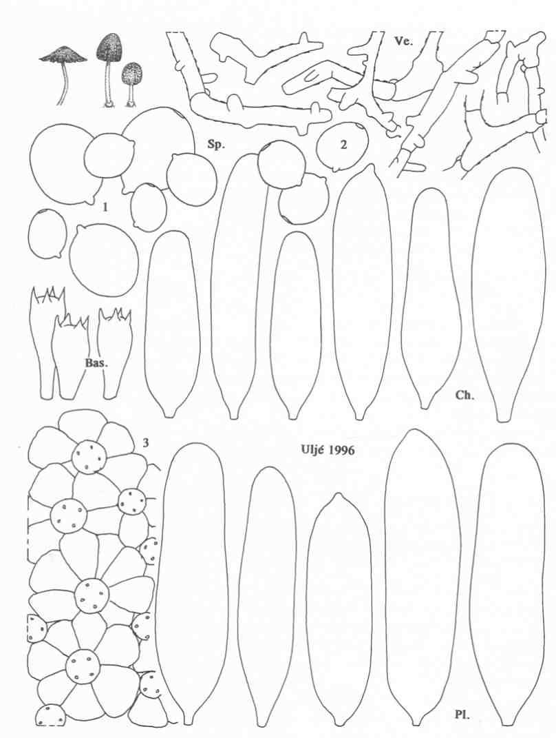 unterscheidet sich durch sehr dickwandiges und anders stukturiertes Velum und ist auch durch andere Merkmalskombiationen nicht mit dem aktuellen Fund zu verwechseln. |