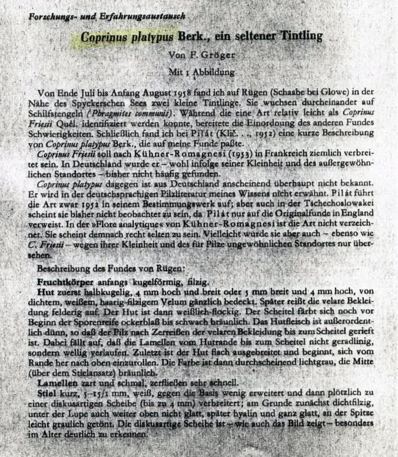 Coprinopsis platypus Gröger